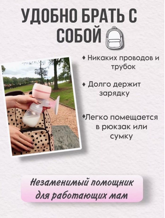 Молокоотсос электрический беспроводной двухфазный с массажной стимуляцией для увеличения лактации - лучший помощник в период кормления. Электронный беспроводной молокосос с массажем - один из самых необходимых аксессуаров грудного вскармливания для новоиспеченной мамы. Аккумуляторный компактный грудосос является обязательным составляющим сумки в роддом, а значит станет прекрасным подарком для беременной, готовящейся к родам. Сцеживатель представляет собой электро молокоотсос, который поможет эффективно и комфортно сцеживать грудь.