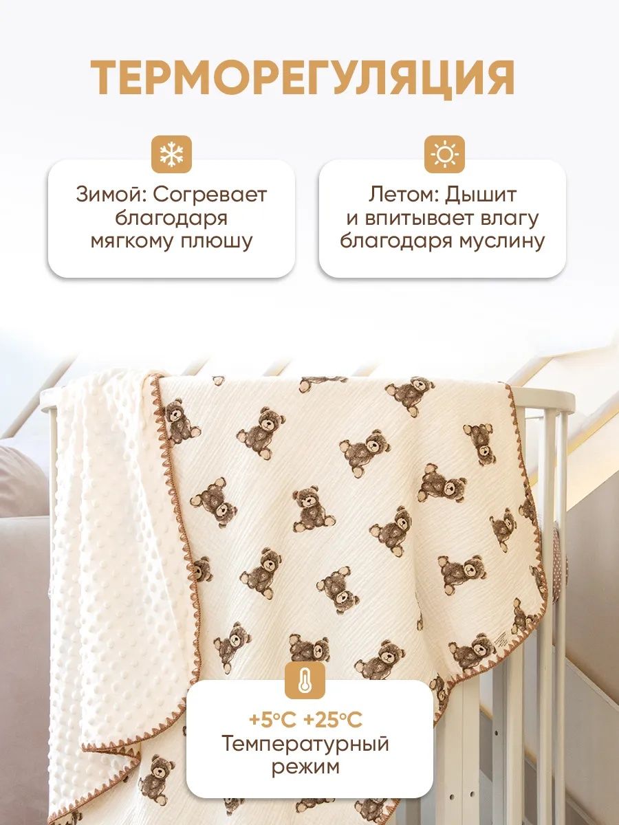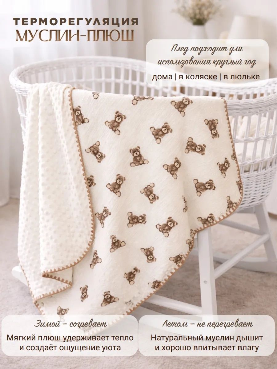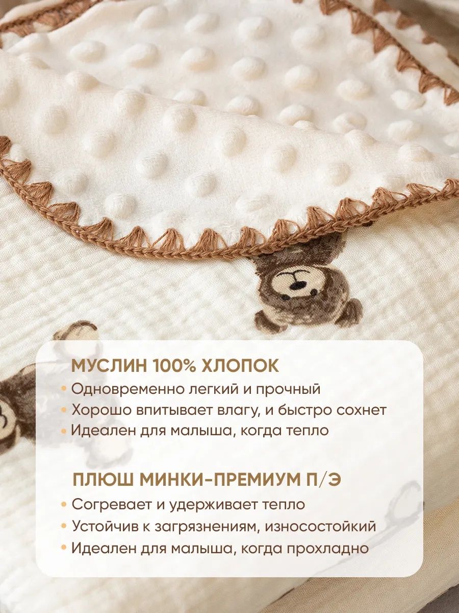 Читать все статьиПлед для детей 100*100 см Муслин/плюш D203