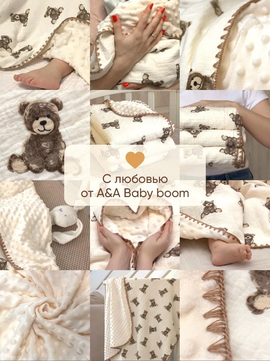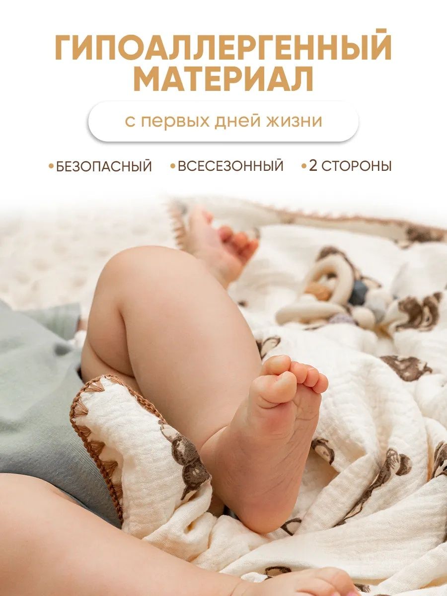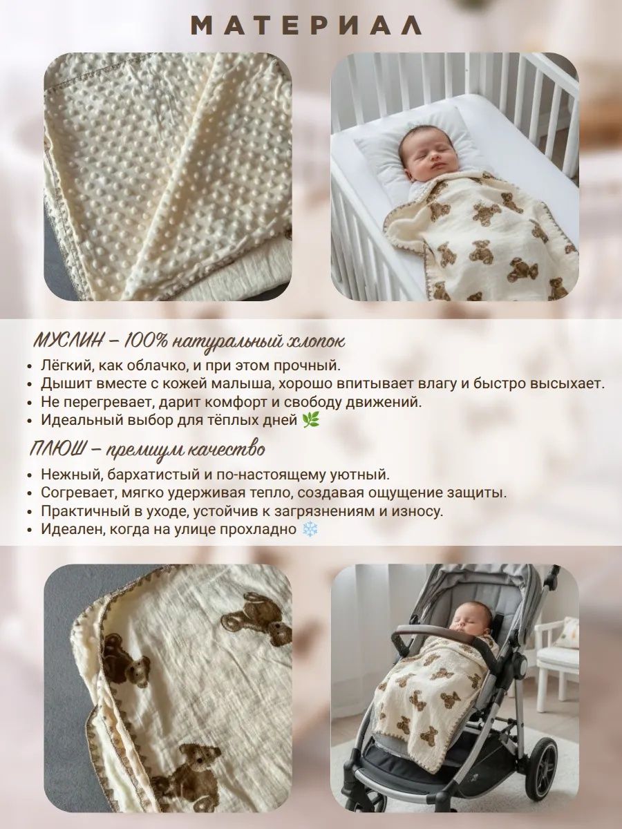 Читать все статьиПлед для детей 100*100 см Муслин/плюш D203
