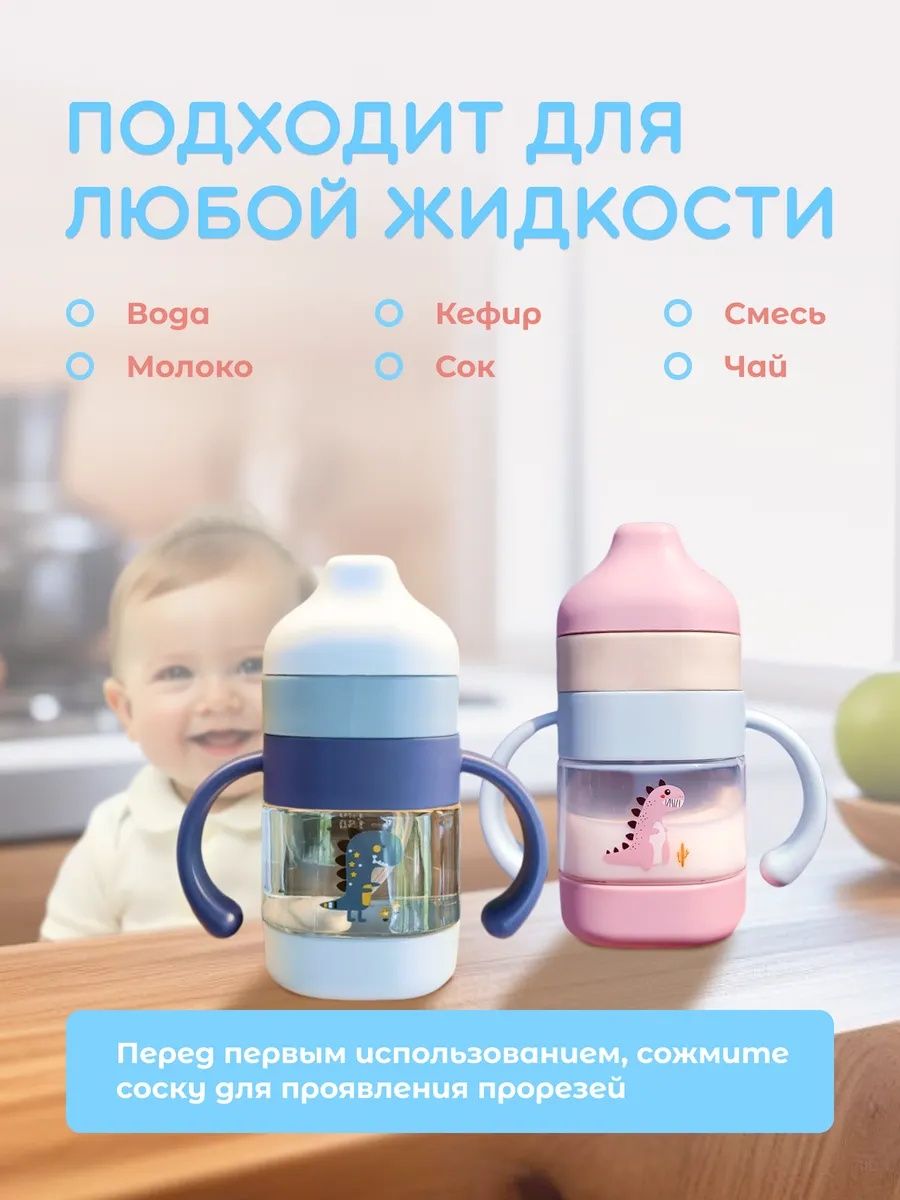 Поильник — стильный и практичный аксессуар для кормления малышей, который помогает научиться пить самостоятельно и развивает координацию движений. Он оснащен двухпозиционной крышкой для удобства в дороге, соской с грузиком для питья под любым наклоном и ручками для комфортного удержания маленькими ладошками. Поильник изготовлен из ударопрочного, экологически чистого материала без бисфенола А, безопасен для здоровья ребёнка и легко моется вручную или в посудомоечной машине. Идеален для воды, детских смесей, сока и других жидкостей, с удобной разметкой объема и яркими рисунками для малыша. При первом использовании достаточно сжать соску для появления прорезей. Другие цвета и размеры вы можете увидеть в нашем магазине Mi Mi.