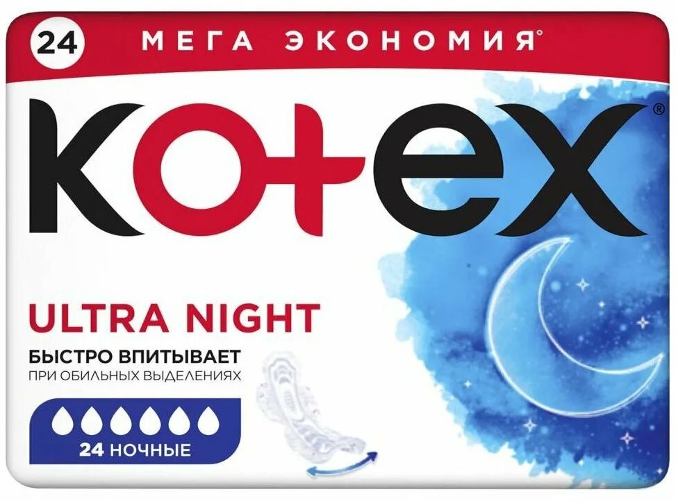 Читать все статьиПрокладки Kotex Quadro Night 24 шт