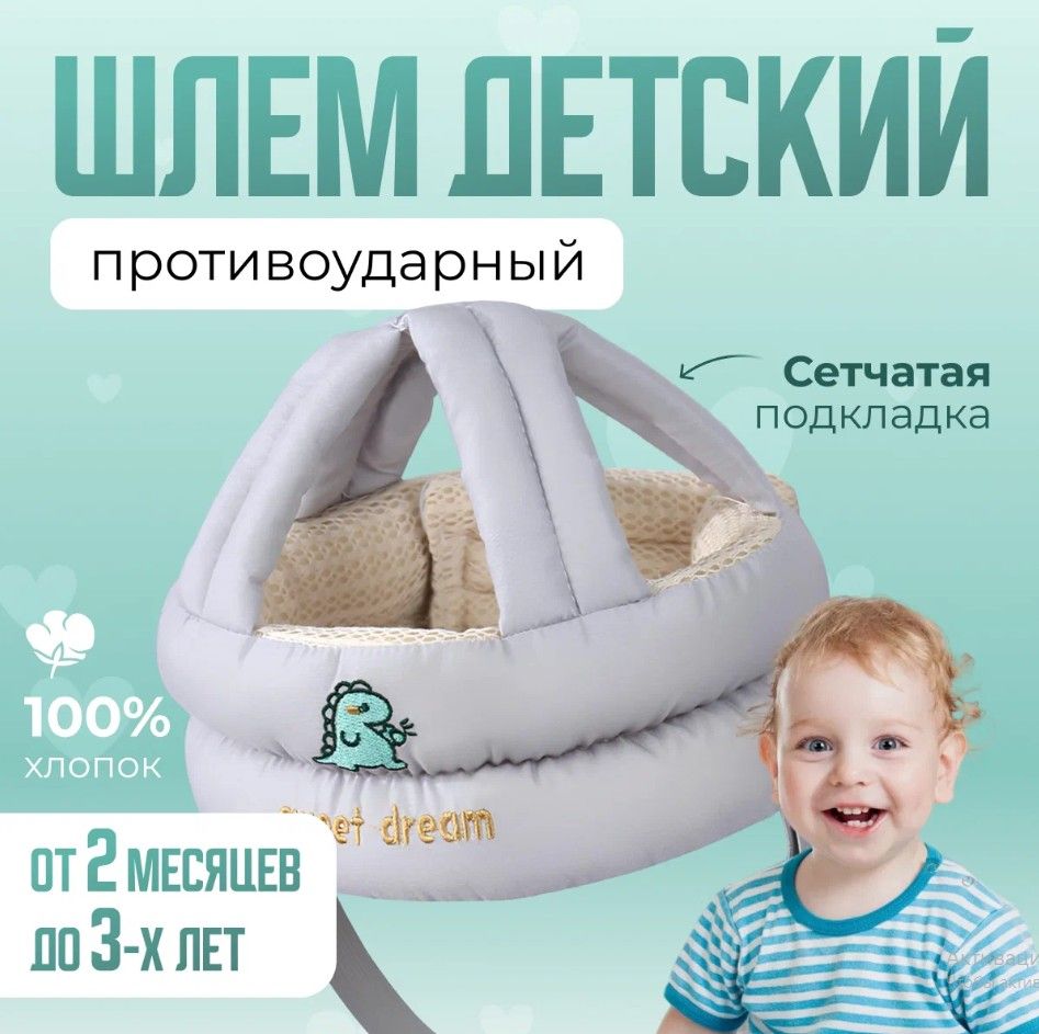 Детская противоударная шапка-шлем — защита головы малыша при первых шагах и активных играх
