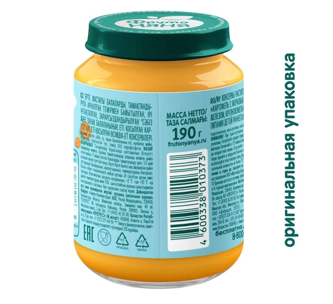 Читать все статьиПюре Фруто няня в стекле картофель,морковь,цыпленок 190г