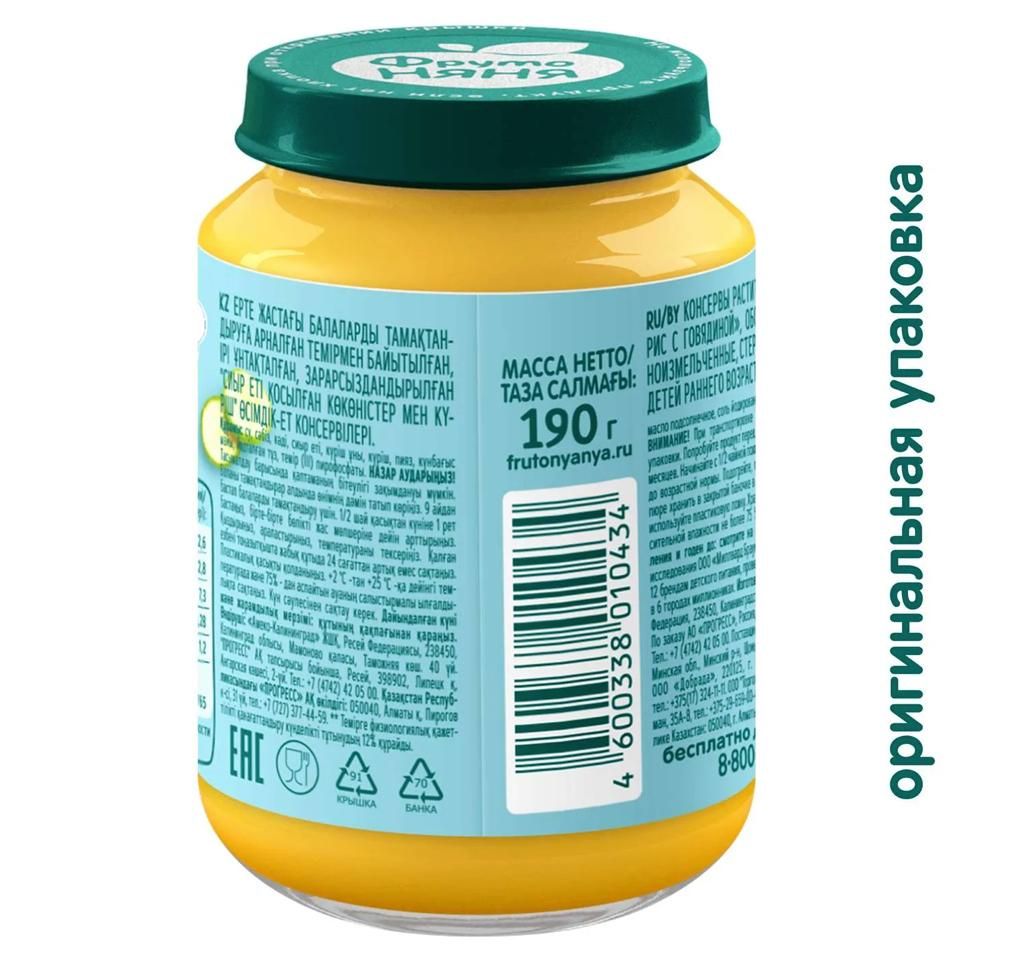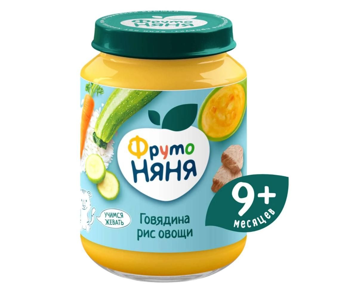 Читать все статьиПюре Фруто няня в стекле овощи, рис, говядина 190г