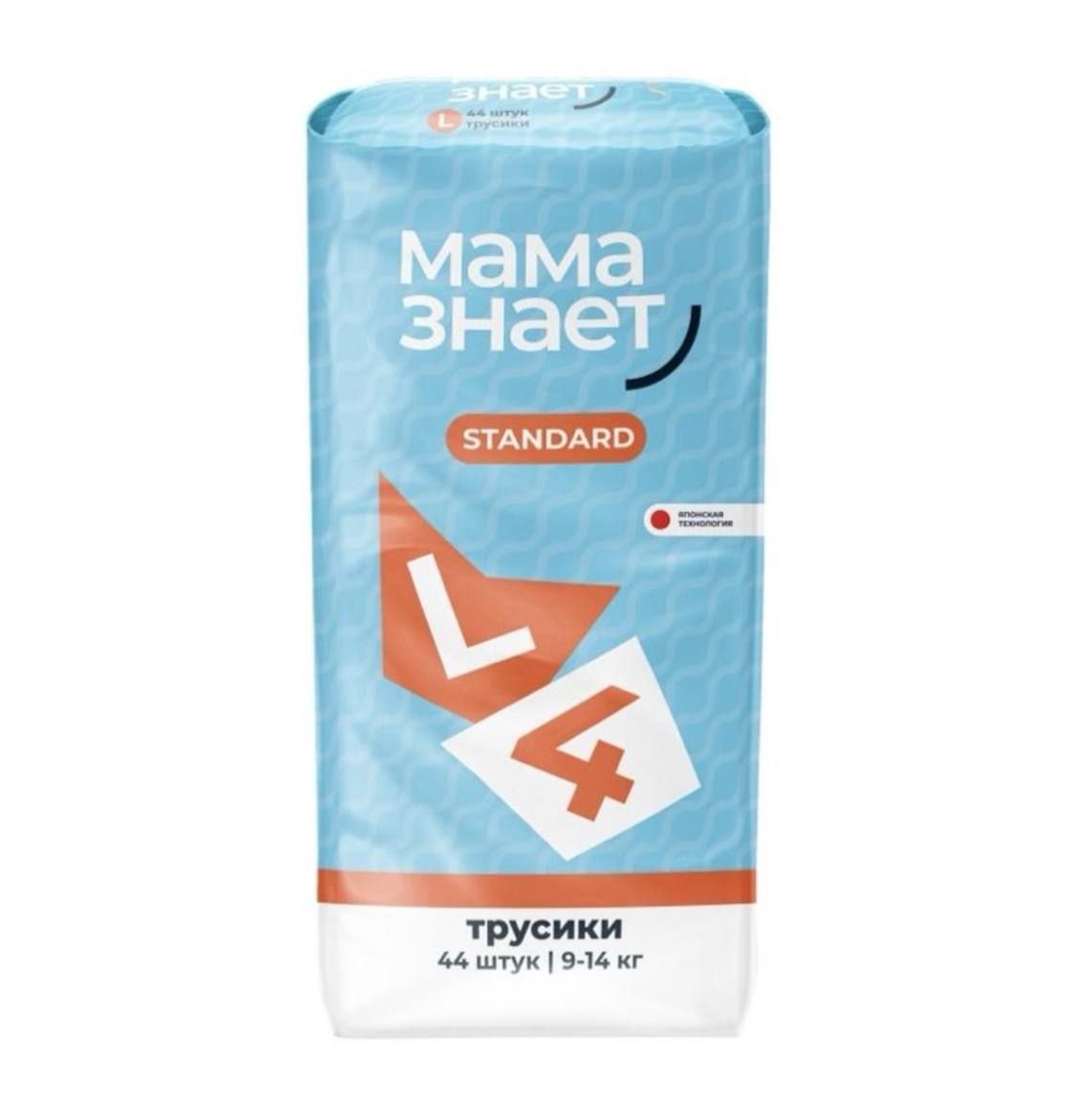 Читать все статьиТрусики Мама знает STANDART 4-L 9-14кг (44шт)