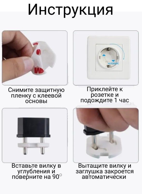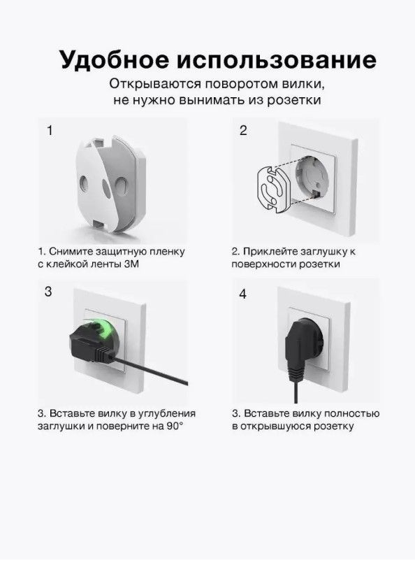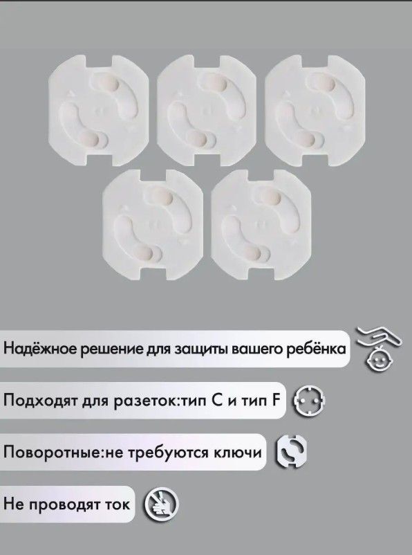 Заглушки для розеток от детей, 5 шт в наборе — безопасное решение для защиты малышей от электрических розеток. Подходят для розеток типа C и F (используются в Казахстане и РФ). Уникальный механизм открытия без ключей: вставка и поворот вилки автоматически открывают доступ, а после вынимания — розетка снова закрыта. Фиксация на усиленный 3M-скотч, не нужно снимать, не теряются, не портят внешний вид. Подходят для дома, детских комнат и других помещений. Безопасные, нетоксичные материалы, не содержат BPA. Незаметные, полностью белые, сдержанный дизайн. Экологичная упаковка — отличный подарок для заботливых родителей.