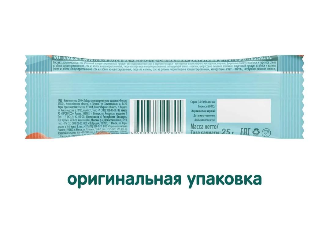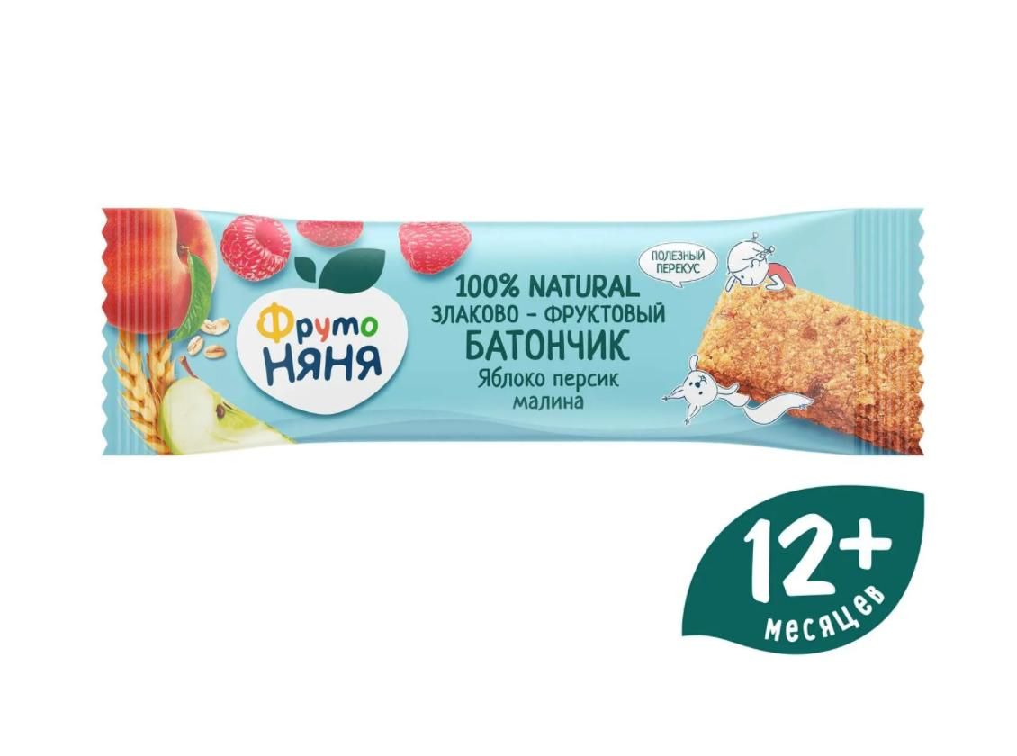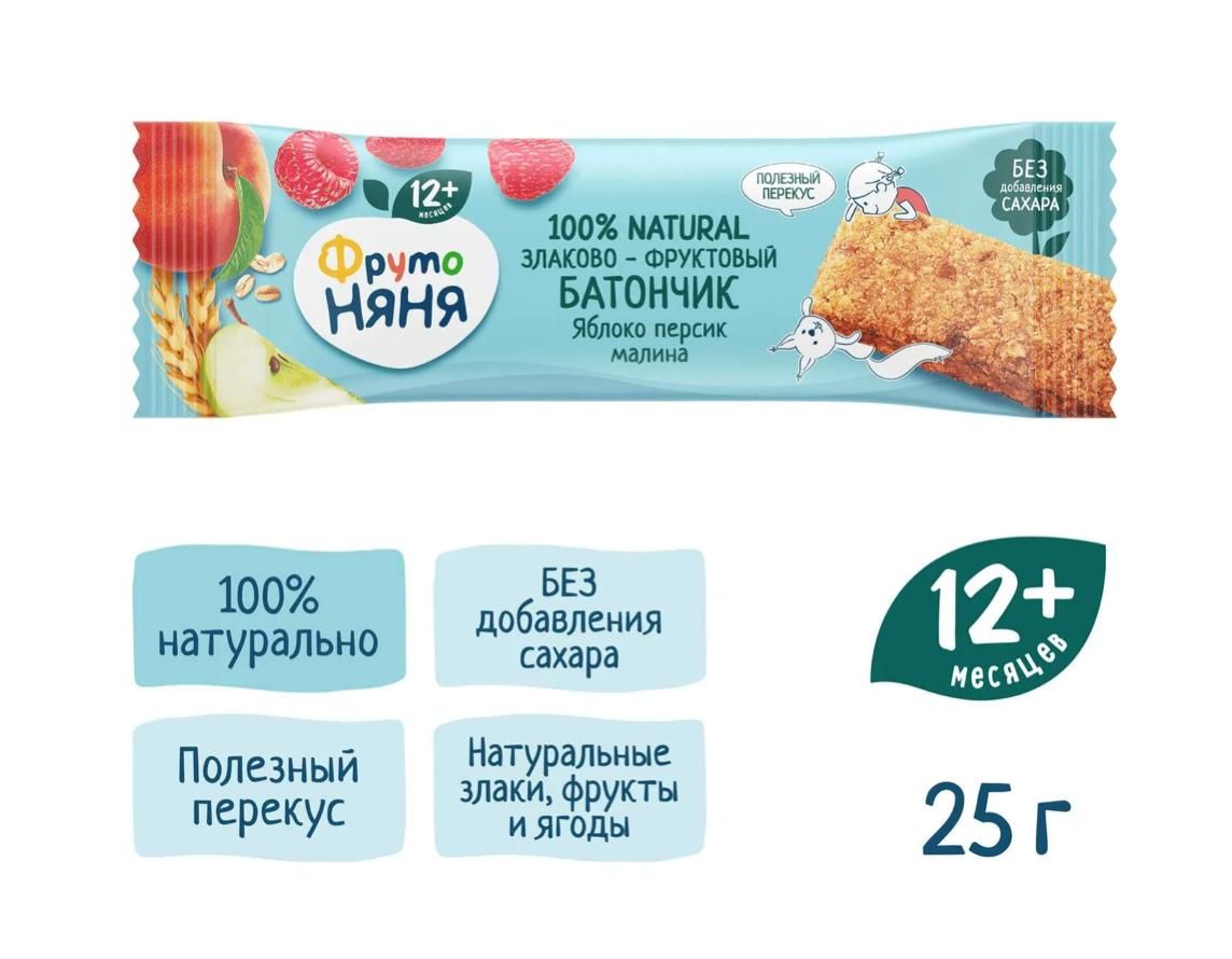 Читать все статьиЗлаковый батончик Фруто Няня яблоко, малина, персик 25 гр